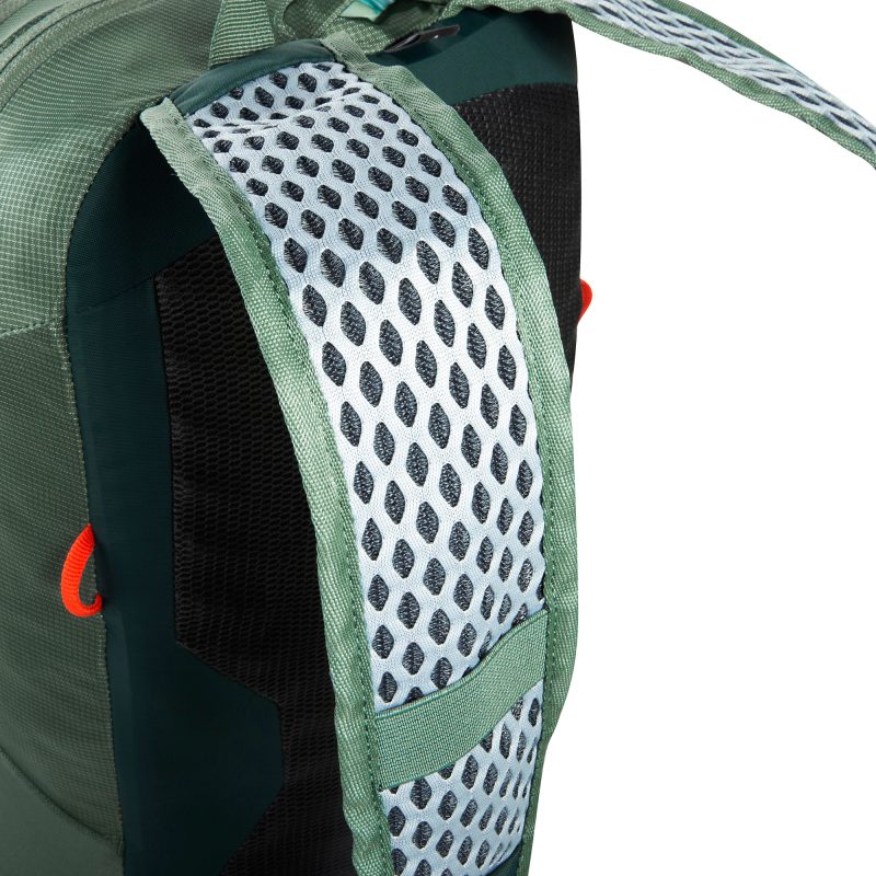 Dzięki wyściełanym plecom z kanałem wentylacyjnym i siateczkową podszewką zapewnia komfort noszenia. Regulowane paski piersiowy i biodrowy stabilizują plecak na plecach, co zwiększa wygodę użytkowania.