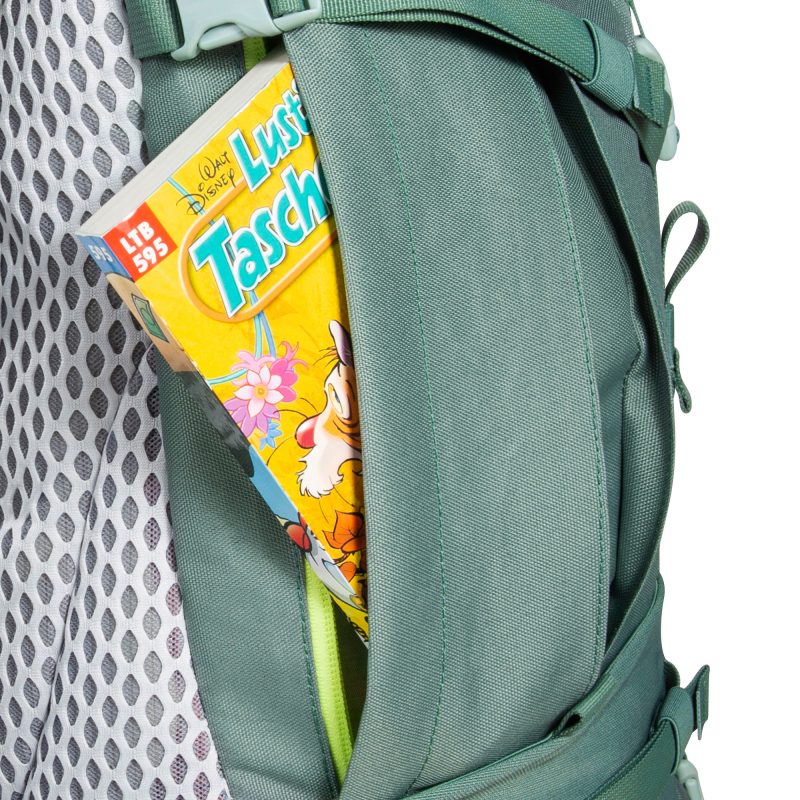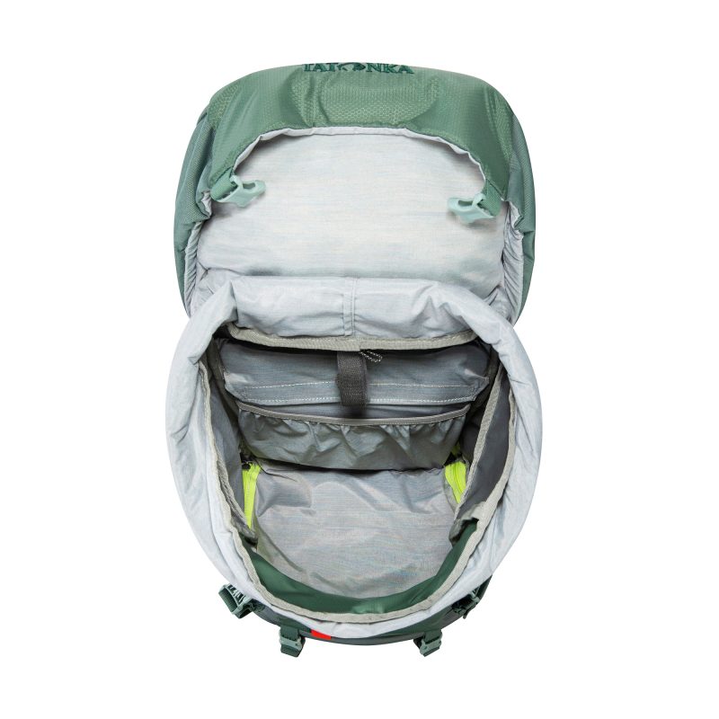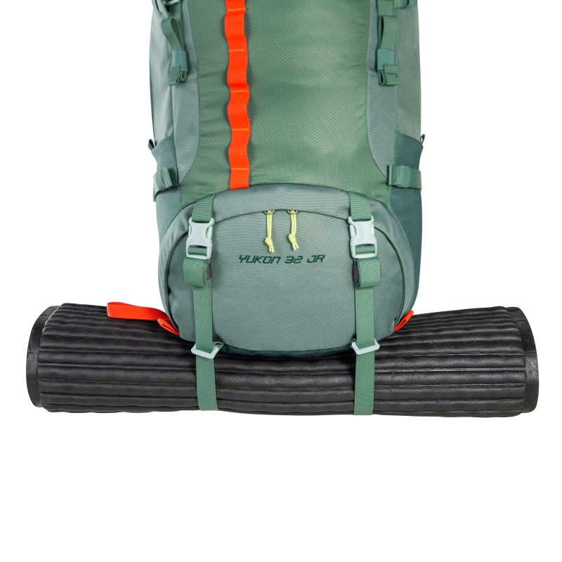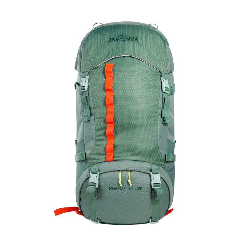 Plecak Tatonka Yukon 32 JR jest podzielony na komorę główną i dolną, a także posiada komorę w klapie i kieszenie boczne. Materiałowe szlufki z przodu umożliwiają mocowanie dodatkowego ekwipunku. Paski kompresyjne mocują zawartość i utrzymują plecak blisko pleców.
