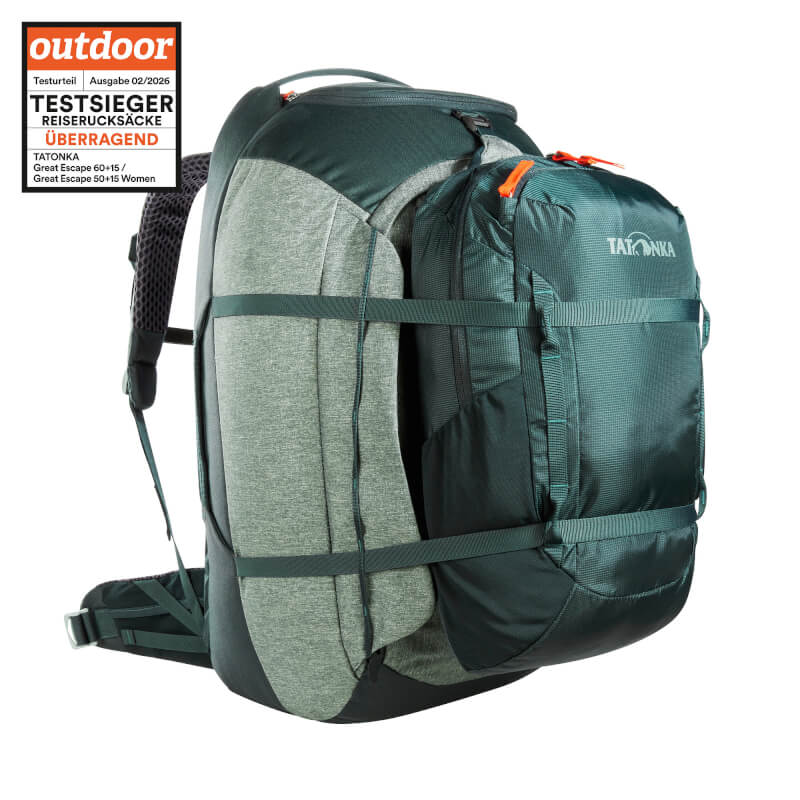 System nośny Frame Comfort Light plecaka Great Escape zapewnia bardzo dobre przenoszenie ciężaru na ergonomicznie wyściełany pas biodrowy. Można go dopasować do długości pleców, aby zapewnić optymalne właściwości nośne. Jego ogromną zaletą jest to, że w razie potrzeby cały system można schować pod zintegrowanym pokrowcem. Dzięki temu plecak nadaje się do transportu bagażu lotniczego i zapewnia idealną ochronę podczas transportu na taśmociągach lub w samolocie.