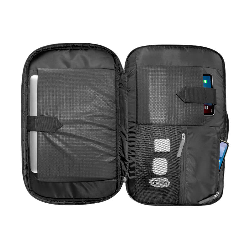 Przednia komora wyposażona jest w organizer, a w przegrodzie na multimedia dostępnej z zewnątrz, można przechowywać notebooka.