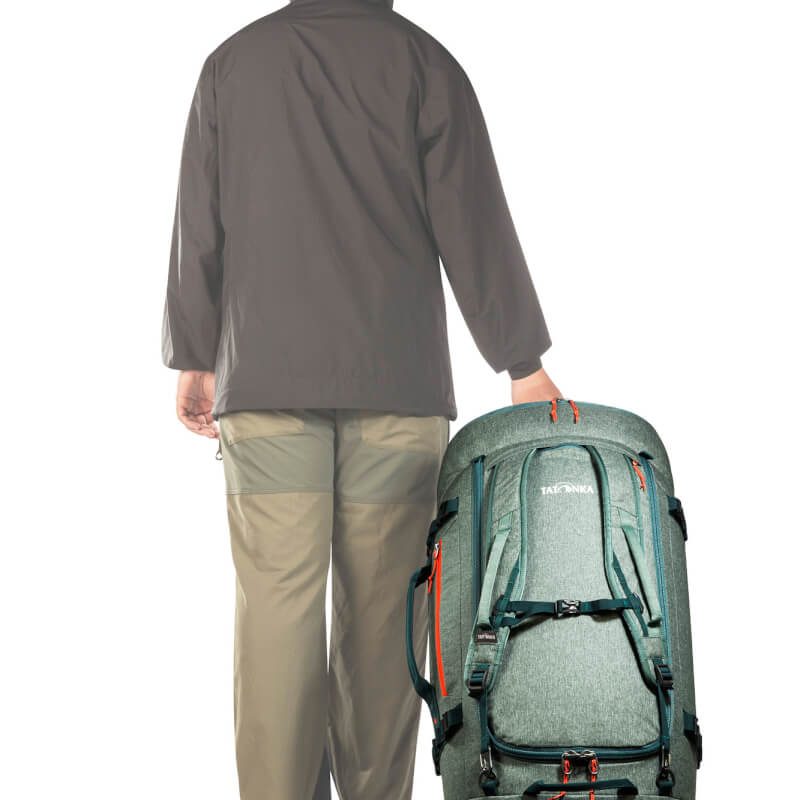 Torbę Tatonka Duffle Roller 80 można wygodnie ciągnąć za wyściełany uchwyt, ale można ją też nosić jak plecak, ponieważ dwa paski na ramię są schowane w osobnej kieszeni.