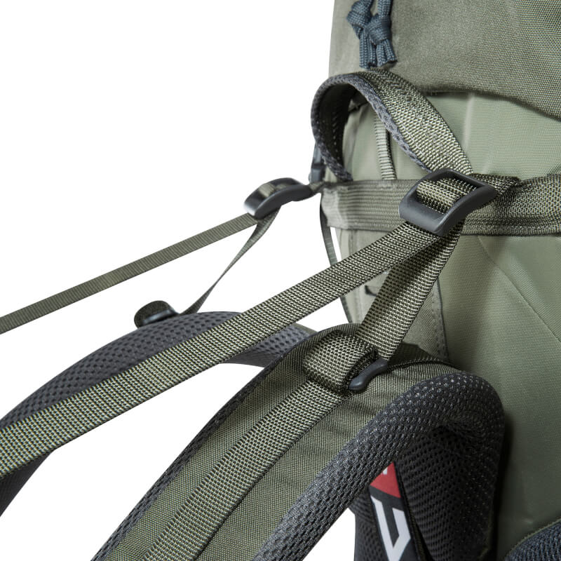 Yukon 70+10 oferuje imponującą pojemność 70 litrów i jest wyposażony w system mocowania kompatybilny z systemem Molle z przodu, po bokach i na jednej płetwie biodrowej, co pozwala na dodanie dodatkowych kieszeni lub innego ekwipunku z asortymentu bushcraftowego firmy Tatonka lub Tasmanian Tiger.